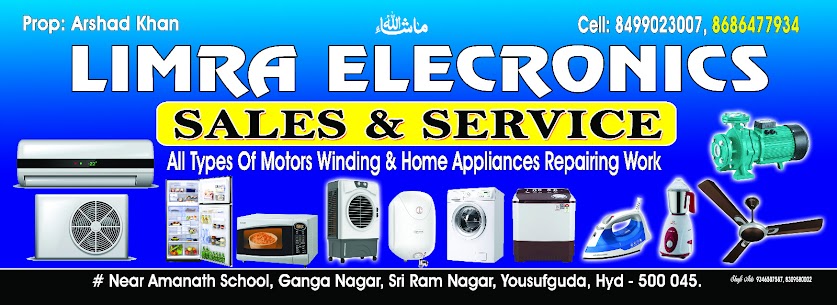 Welcome to LIMRA Electronics, Hyderabad's top destination for expert electronics repair services. Wi... th 13 years of experience, we specialize in repairing home appliances, focusing on refrigerators and washing machines. Our skilled technicians handle repairs for popular brands like LG and Samsung. From single-door to side-by-side refrigerators, we ensure a seamless experience. Trust us for quality repairs on microwaves, air conditioning units, water pumps, and dishwashers. Read more